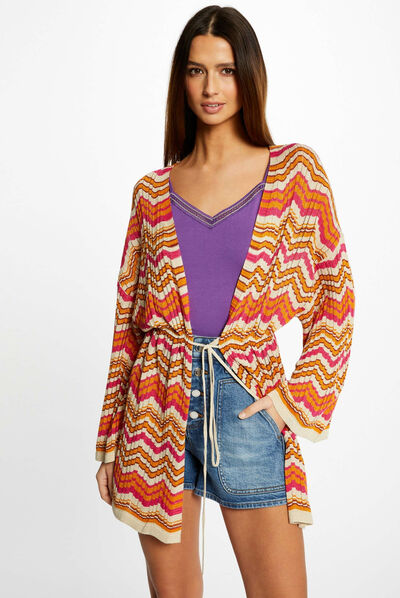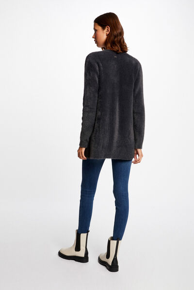 Gilet manches longues imprimé gris moyen femme