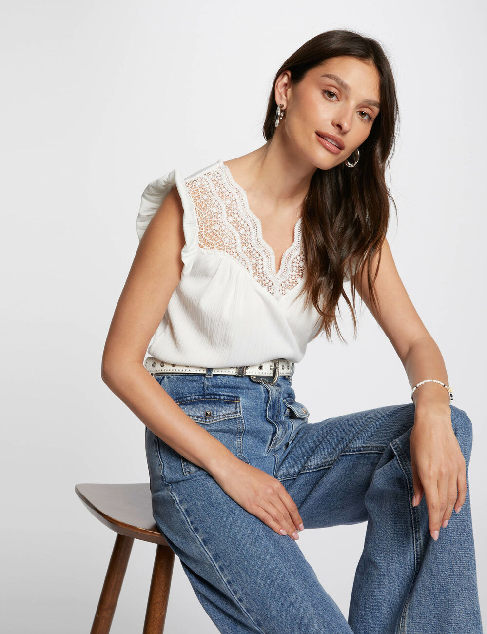 Geplooide top met kant ivoor vrouw